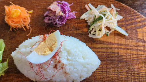 いや~穴場でした。予定変更で急遽寄ることに。結果大正解!また今日は11月なのに天気も良く最高!広々した店内。ハワイアンミュージック。ソファーや、ちゃぶ台、テーブ席など様々。色々なくつろぎ方がって◎窓から越前浜が一望でき最高。たぶんサンセットもキレイに見える。プチリゾート気分。笑 食事はやや高め設定。場所代と捉えればOKか?角田浜の『なみ福』も高いしね。それでもランチはドリンク込みとか、もう少し料金を抑えてくれると、リピしやすくなる。バターチキンカレーをオーダー。お肉は手羽元2本。煮込み具合がベスト!ただ手がよごれるから食べづらい。汗 量は少なめ。味はマイルド、辛味もほぼない。どストライクな味でメッチャスキ♡付け合わせも手が込んでてどれも美味。なんか一期一会。ステキなランチにな...