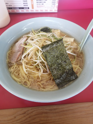 ラーショといえば、ネギラーメンです! オーダーは、ネギラーメン大盛りとギョーザを注文しました。 着丼時に大盛りの丼の大きさにびっくりしましたが、麺量は普通の店舗さんの大盛りと同程度でペロリと食べられました。 具は沢山の白髪ネギとチャーシュー1枚、ワカメ、メンマ、ノリが乗っております。白髪ネギは、ゴマ油で和えられてウマイ!! 麺は中麺で、コメントで言われるほど柔麺では無く、丁度よい茹で加減。硬麺ではありませんが、麺のコシが感じられる程度の茹で加減でした。 スープは豚骨醤油なんですね。ラーショの味自体を忘れていたようで、、 あぁ、こんな味だったっけ的な懐かしさも覚えていなく、やはり30年振りですので、味をしっかり忘れていました💦濃いめな豚骨醤油で美味しくいただけましたし、海苔をスープに付けて、スープを吸い込んだノリはうんまい!! ギョーザは、画像では分かりづらいですが、結構なサイズのジャンボ餃子です。熱々&皮がカリカリで提供されます。今回は実は、ネギラーメンよりかはギョーザに感動しました。 あと、値段が安くて、流石に企業努力が伺えて、感服します。