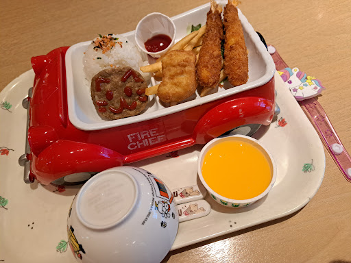 食事をする方はドリンクバーサービスという嬉しいサービスもあり、お子様メニュー(おもちゃ付き)もラインナップがあったりと、子連れにはありがたいレストランです。 メニューも和洋中ととにかくメニュー豊富で迷ってしまう程でしたが、ファミレスのラーメンが好きなので担々麺のセットにしました。 お味は特筆すべき物はありませんが、大手ファミレスと同等のクオリティはあると思います。