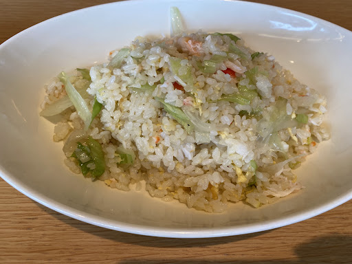 炒飯自体はシンプルな卵炒飯。 かかっている餡には蟹肉、卵白、アスパラ、白舞茸が入っていました。 赤いのはクコの実ですね。 とても美味しい炒飯でした。