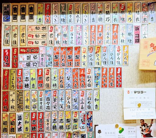 また、壁には一面に古町芸妓さんの 千社札(お名刺)が貼ってあるため、 お休み前の日にニンニク餃子を 食べにくるのかな、、と思いました。
