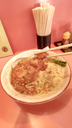 スープとはメンマはややしょっぱめで、パツパツとして歯切れの良い細ストレート麺との相性は良いと思う。 豚のから揚げはインパクトを出すためか、カレーのような風味。