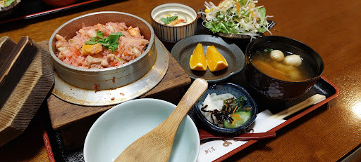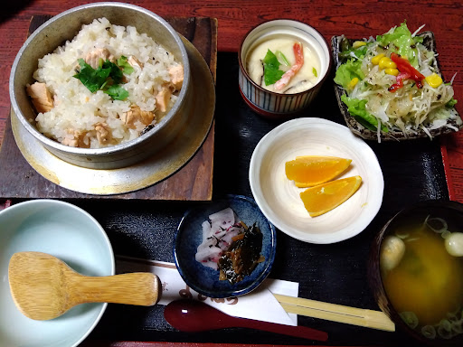 Read more若干お店が分かりづらかったです。 ランチ釜飯セットは土日も同じ値段 ミックス以外は全部1380円でした。 釜飯がたっぷりでお腹いっぱいで、もう完食は無理かもって思ってたら、お店の方がラップを持ってきてくれて 自分でおにぎりにして持ち帰ることが出来ました。 平日のランチは他にも色んなセットがあるみたいです。 電話予約して 釜飯もお伝えしておくと 提供までの時間が短縮するようです。 また行きた...