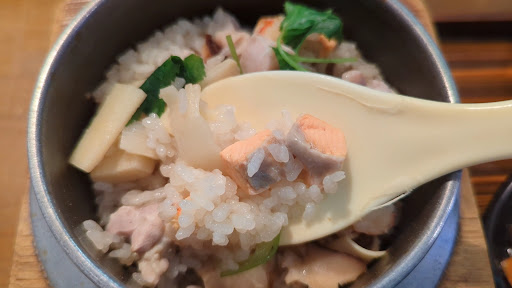 Read more新潟の数少ない釜めし屋さん。ルーティンに入ってる。笑 平日のランチが特にお得!いつも混んでるイメージ。11時50分到着。さて今日は… 駐車場は空いてる!良かった。汗 オーダーはいつもの五目釜めしのCセット。(+税込385円)竜田揚げが3個付きます。注文してから炊き上げるので少し時間が掛かります。20分弱で運ばれてきました。まずは釜めし。蓋を取る。フワッと立ち昇る湯気が鼻腔ヲ抜ける。新米の香り。食欲の秋。硬めに炊かれたのご飯。美味しすぎる!具材は鶏肉に鮭、海老、椎茸、たけのこ、三つ葉と具沢山。釜の底にはお焦げがスタンバイ♡ウマッ!竜田揚げは、小ぶりの一口サイズが3個。薄味でしっとり。釜めしを邪魔をしない味付け。ナイス!小鉢もお味噌汁も、ちょうどいい塩梅。はぁ~幸せ。 夜営業も何回かお邪魔しましたが、どれも美味しく、とても居心地のいいお店。近くに欲しい。笑 またお邪魔し...