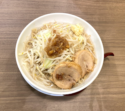 Read more平日11:30頃に入店、店内は他に2組ほど。 注文したのは豚ラーメン青二才(麺200g)、豚マシ肉2枚。希望は野菜マシ、ニンニクマシ、アブラマシマシ、カラメにて。