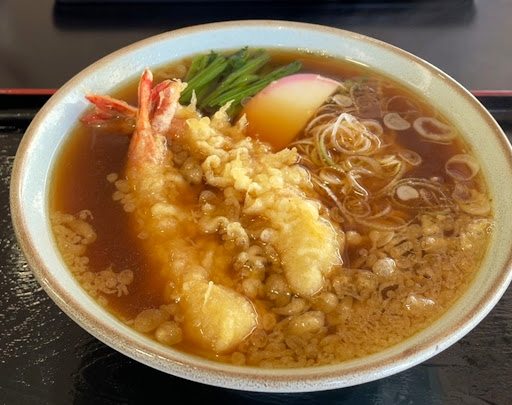 天丼は海老二本、シシトウ、シイタケ、ナス、カボチャ。タレがかかっているがべしゃっとせず、サクサク感を保っている。ごはんは粒が立つやや固め。1080円。おいしい。