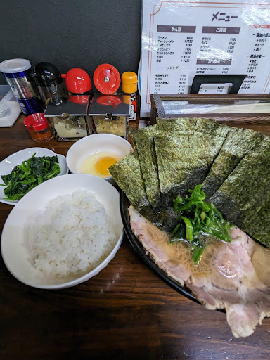 Read more平日のお昼に訪問。かなり空いておりみなさんがコメントしてある鬼門の駐車場も1台のみなので展開しバックで駐車。確かに満車状態だと気を使う狭さかも。玄関フード右手側に発券機がありそこで食券を購入し入店。店内はカウンターの他、テーブル席と座敷。カウンターは間仕切りがあり一人分のスペースが広くゆったり出来ます。今回はチャーシュー麺¥1,030にほうれん草増し¥150円と海苔増し¥110、それと卵かけご飯¥100をオーダー。細麺と太麺が選べるようで太麺をチョイス。コールは硬め濃いめ多め。提供まではかなり早いです。スープはガツンとした感じではなくライトな家系ですが最近はこういう系統の方が好み。麺もモチモチで良い茹で加減。ほうれん草増しの分は別皿提供。麺とスープは満足だったんですが問題は具材。まず海苔がすぐにスープに溶けるタイプで家系でこれは頂けない。あまり硬すぎるのも食べづらいので好きでは無いですがさすがに弱すぎ。それとチャーシューも豚バラのスライスっぽい感じでこちらもあまり好みではありませんでした。それと麺量がかなり少ないような・・・あまり量を食べられる方では無いので個人的にはちょうど良かったですが、一般的な麺量の三分の二程度に感じました。ただ接客も元気で丁寧ですしベースであるスープと麺が悪くないので今後の期待を込めてこ...