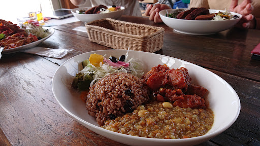 平日のランチに行きました。真夏日で暑くてお店に入ったら、エアコンはなく、店内はひどく暑かったですが、窓際の席に案内されたら、心地良い風がきました。 メニューが少なく、カフェなので値段は高めです。ドリンク飲み放題も500円なのに、自家製のジュースとか、麦茶です。高いです。料理の味はおいしいかったです。1階はテーブル席で2階はお座敷で子連れにはありがたいのですが、当方子連れだと言うと、2階で騒ぐと、1階のお客様にご迷惑になりますと言われました?? 平日は空いてたので、予約はしなくても入店できました。土日は混むかもしれないので要予約。 目の前に海がありますが、海で遊ぶには、海の家の使用料金を払わないと遊べないそうです?? 普通においしいものを安く食べるにはガストが1番ですね!笑 おしゃれカフェなのか、謎でした! みなさん、何を基準におしゃれカフェなんですかね!...