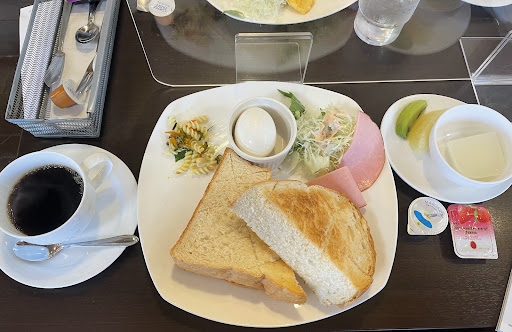 Read more珈琲倶楽部の他のお店では既にモーニングは600円なのに、え👀‼️まだワンコイン?と思って入りました。山型食パンは分厚く、サラダとデザート付いて500円、満足です🎯お客様が帰られると直ぐに片付けて、テーブルと椅子を除菌されるテキパキとした作業をされるスタッフさんにも好印象でした。同じ建物に入るお店と共用の駐車場なため、満車で止めれないかも😅という心配は有りま...