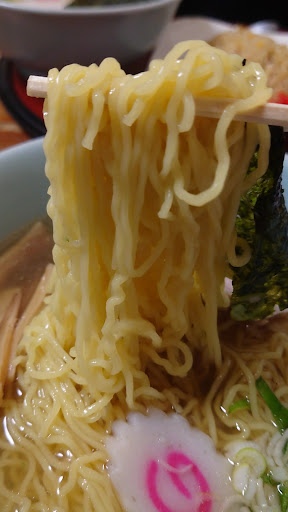 Read more沼垂で70年続く老舗大衆食堂 ラーチャン発祥の店として有名な衆楽(しゅうらく)さん、近くに用があった際に訪問、平日の20時30分でしたが先客なし、ゆっくりした時間の流れるお店です。 店舗は沼垂の市道を入った所にあります。市道なので駐車場は店前2台程度で後は近くに路駐するしかないのですが、周辺住民の方が通報する可能性も有るので正規の駐車場オススメです。 さて、店舗は雪国仕様で少し高く上がって入口になるよう設計された住宅兼店舗の感じ。 風除室なくそのままお店になります。正面大きなテーブル席、右手に厨房、左手小上がりでテーブル3正面奥壁付のカウンターというコンパクトな作り。店内所狭しと新潟ローカル局のタレントさんのサインや雑多なインテリア、金魚の水槽にテレビと言うほっこりするインテリアが置かれてる。 メニューは大衆中華でラーメン炒飯、餃子、シュウマイ、カレー等様々ラインナップ。 ラーチャンのお店ということでラーチャン700とシュウマイ600を口頭オーダー 程なく着丼 スープは透き通った鶏ガラに薄口のカエシを併せたあっさり系、メンマと海苔、ネギとチャーシューというシンプルなトッピング、やや砂糖と塩が強い。そこに加水程々の中細縮れ中華麺を併せてありシンプルに美味しい。 炒飯は醤油と鶏出汁のパラパラ系で油炒めを鶏ガラで流しながら食べるスタイル。悪くないかも。 しかもこれで700円は安すぎる。 シュウマイは肉汁ジュワでギュウギュウ系、辛子と醤油で美味しく頂きました。カレーも名物ということで次会カレー食べに来たいと思い...