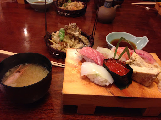 Read moreけっこー前に来ました。夜来ると高いみたいなんですけど、ランチは全然手頃です。駅近くでパスタ食うのと変わんねえ値段。 寿司も美味しいんですけど、天ぷらがちょ〜おいしい。味噌汁もおいしい。手巻き寿司か天ぷらか選べた気がします。 すごくおいしい。もう回る寿司食べれない。食べますけど。