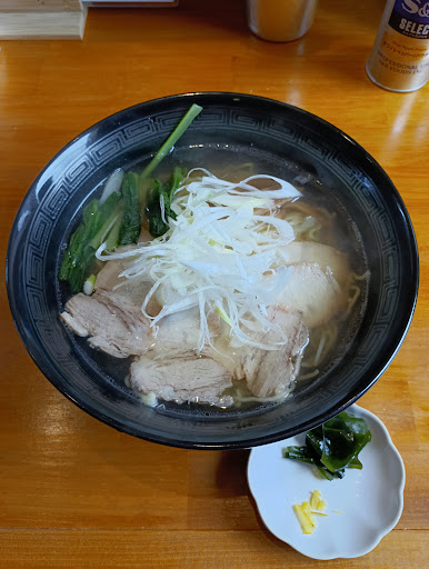 入り口の張り紙に駐車スペースは店舗向かって左の1番2番のみで他は違うのでコインパーキング等利用して下さいとあるが2番が店舗左すぐで1番は店舗裏の道へ回った味庄と薄くなっている所?同じ道沿いラインの写真屋右にも番号ダブりで1番2番があるが(こちらは塗装が新し目)説明が不十分だと感じました車で行く人は確認したほうが良いでしょう(張り紙するなら区画図も出せば良いのでは?) 店内カウンター6席(3.3)と4人テーブル2席に2人テーブル1席と狭め メニューは最近では何処も1000円前後なので大差は無し醤油に塩と豚骨で豚骨は数量限定らしい 並盛で量は多め?と思える位で大盛と特盛他トッピング等有 醤油と豚骨は値段上がるが背脂も追加メニューで有り 着丼は空いてたからか基本なのか不明だけど早め メニューで多少提供前後の入れ替わりがあったのは何処も有るのでまぁ普通