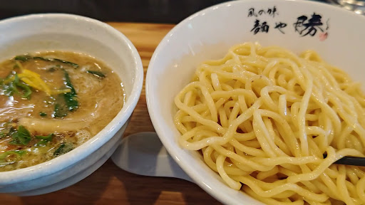 麺は太めのストレートで、凄くツルツルしていて、喉越しよく、しっかりコシもありおいしかったです。スープは魚介ベースで、意外とあっさりしている中にもコクがあって、そのままでも飲めてしまうくらい美味しいつけ汁でした。 このお店は割スープがあるのですが、鰹出汁の効いた割スープなので、つけ汁との親和性も高く、より美味しく最後まで頂けました。大盛りでも良かったかも…