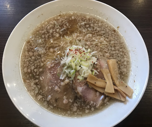 スープから煮干し風味が漂って来ます。 細麺ストレート系な麺と背脂煮干しが あっさりながらしっかりとした旨味を感じるラーメンです。