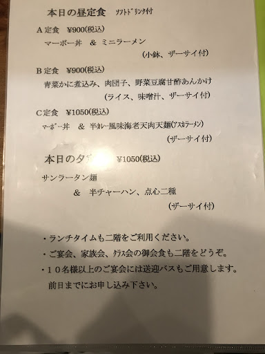 Read more日曜日2時頃、初めて訪問。以前肉団子をいただき、とてもおいしかったので、一度食べにきたかったお店。 お店の前にも駐車場あり、一方通行の脇にも第二駐車場あります。段差があるので、要注意 テーブル席や、掘りごたつ式席もあります、店内は広くて綺麗。 ランチは15時まで。春のメニュー えびと豆腐のあんかけ麺とミニ八宝菜 杏仁豆腐つき1300円。細麺優しい塩味ボリューム満点、ミニじゃないくらいたっぷりな八宝菜具沢山。 子連れ家族にもおすすめ。 カード決済もできる。 肉団子550円テイクアウトしました ぜひ一度食べてほしい おすすめですよ!