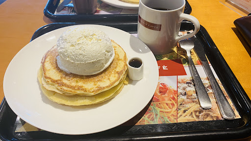 Read moreNice mix of basic coffee/drink menu with food offerings, mostly on the sweet side - chiffon cake and pancakes with various toppings. The drinks range from good to pretty good. The benefits of the cafe include many charging outlets for your electronics and free-wifi on site, no password protect though. Lots of seating. Also right next to a bookstore if you'd just like to...