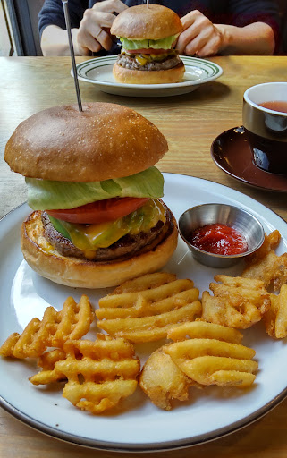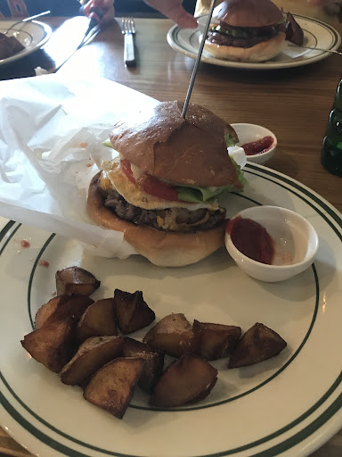 Read moreThe burger was strange, kind of a combination of chunky chopped steak and ground meat. The main problem, other than the texture of the burger, was that the patty was much too thick and not seasoned at all. The bun was grilled strangely on the outside instead of on the inside. The burger had too many condiments. However, the atmosphere, interior and staff, were all pleasant. They give you very few fries, literally 5 or 6 skinny ones. I wish the...