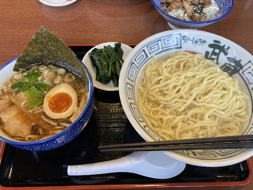 私はつけ麺(あつもり)、連れは野菜味噌ラーメンにちゃーしゅう飯を注文。 つけ麺、美味しいけどちょっと味が濃いかなー。つけ麺は薄まる前提とはいえ、割スープが欲しい。言えばもらえたのかなぁ?テーブルにお酢とかあれば味変できたけど、ここの店舗はテーブルに調味料を置かないっぽい。