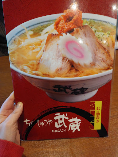 武蔵で野菜味噌ラーメンは初めてだけど、正直めっちゃ好きな味!しかも熱々!! こないだ別な店舗で食事した時はぬるかった…食べやすかったけど、やっぱり最初はアチチアチチとフーフーしながら食べたいのよ。 お食事券まだあるから、今度は私も野菜味噌ラーメンを頼むことにする。