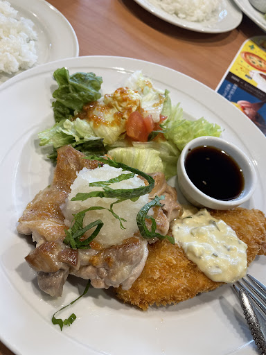 Read more春休み中のランチで、親子連れで混んでおり、待ちました。 ホールの従業員が少なかったみたいで、片付けてないテーブルが目立ちました。 ランチメニューではなく、季節のメニューから選びましたが、ドリンクバーの表示がよくわからず、スープも別に注文し、会計時に、訂正してお安くしてもらえました。 若い男性の従業員さん、多分、バイトだと思われますが、笑顔もなく、言葉も少なく、子供連れのお客さんが帰ったテーブルを片付けても、どこのテーブルの下もゴミがあり、落とした物を片付けない親御さんも、どうかと思いますが、従業員も片付けないとは… 多分、もう...