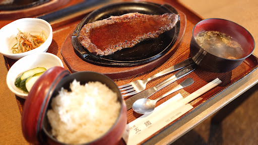 今回注文したのは「ステーキ定食」。醤油ソースを選びました。お肉は大ぶりで、脂の乗り具合が絶妙。口に入れるとジューシーで、噛み応えと旨みをしっかり感じられます。醤油ソースが肉の風味を引き立て、和のテイストながらも満足感のある一皿でした。量も十分で、お腹も心も満たされる食べ応えです。