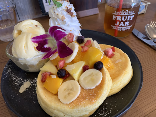 I’ve eaten a lot of pancakes throughout Japan, and they all sucked! Except these! These were great pancakes! Buttery, fluffy, sweet, just like classic American pancakes. Garlic butter shrimp could use more butter but still delicious...
