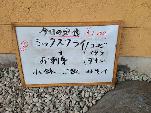Read moreいつきてもおいしー。駐車場が3~4台で早い者勝ち。 10月3日は12時過ぎに若手カップルが先客にて着席。ただ残念なのがその後幼児と赤ちゃんを連れた若夫婦の来店。幼児や赤ちゃんは大きな声はしょうがないが なぁんと母親がもっと声が大きい。他のお客さんに対しても全然気にせず 幼児に うどん食うか?そば食うか?どんな環境でお育ちになったのでしよ?まぁ会計時に見えたのが 旦那も膝立で食事中。黒のキャップで全身黒のおかあさん あなたが一番迷惑でした。 R6年4月2日 ラッキーにも駐車スペース 一台空き有! 今日の定食 刺身とミックスフライ 大盛でおいしくいただきま...
