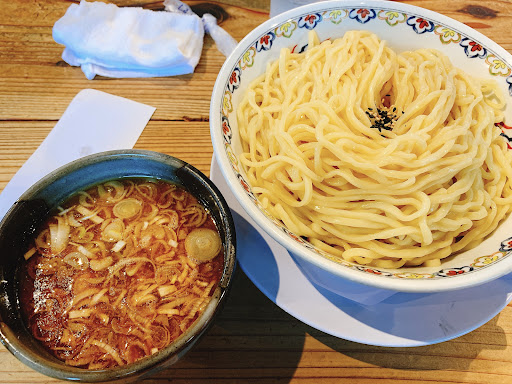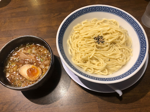 Read more現場から徒歩で10分…ギリギリの距離。 雨だけど傘を忘れたんで競歩ちっくにお邪魔しました。 みんなつけ麺頼んでるんで俺も本家つけ麺特盛りを注文しました。 酸味の効いた醤油にゴマと魚粉とネギの漬け汁。 太麺はモチモチ感も有りながらコシと喉越しが良い麺。 500gもスルスルと食べちゃいました。 チャーシューと味玉美味かったから次は普通のラーメン食べてみよかな。 美味しかったです。