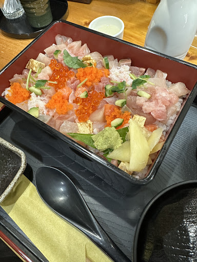 A cute little sushi shop near Ryuto Ohashi. They have various chirashi sushis for lunch time. They have regular sushi too. The interesting thing is they have great many cup sakes so you can try many different sakes here. They have 6 or so seats at the counter and 2 tables in tatami area. The food...