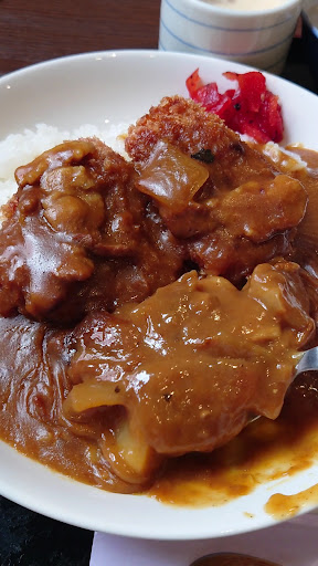 残念ながらカレーは普通でひねりなし。タレカツ用のカツ転用でこちらもカレーよりタレが合う。