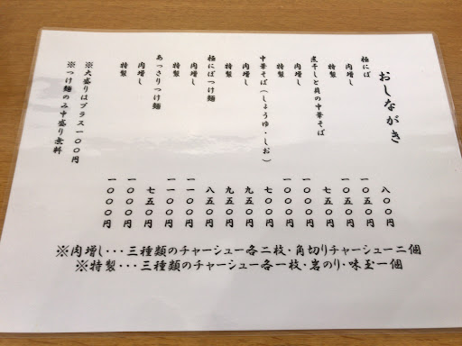 以下、旧店舗の感想↓ 土曜の12時少し前に入店。最初に食券を買うシステム。すでに10人近い人が店内で待っていた。回転は早め。6人テーブルは3×3なので相席あり。あとは小上がり席。 極にぼを注文、魚粉と豚骨の効いた濃厚なスープに中太麺が絡み合って美味い。チャーシューはオープン当初に比べると薄くなったけど逆に食べやすくなったのでは。玉ねぎのみじん切りが濃いスープの後味をスッキリしてくれる。 魚粉が多い順に極にぼ→中華そば→あっさりそば、となるので自分に合ったスープを試してみるのもいいかと。 どうでもよいけど、お店入り口のベンチに茶髪のにーちゃんがずーっと寝て...