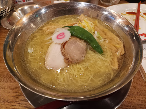 Read more土地勘のない旅先で、夜、軽く飲んでからラーメンでも食べようと思い、特に調べることもなく、目立った看板のこちらの店に寄らせてもらいました。 まずはハイボール。お通しはタン煮込み(ピリ辛)かな? ハイボールはウィスキーの種類もいくつかあるようで、完全に飲み屋クオリティの、旨いハイボールでした。次いで注文した餃子も、小ぶりながらいい感じに汁気のある、つまみに向いた品。レモンサワーもステンレスのグラスで良い口当たり。いきあたりばったりで入った割には、まさに求めていた「飲んでから、ラーメン」の店でした。 締めのラーメンは、鶏清湯の「潮ラーメン」。正直、飲んだ後だったら身体が塩分を欲する分、もう少し塩っ気が強い方が口には合うとは思いますが、よくよく味わってみると旨味のある良いラーメン。麺は、中華麺とパスタ麺とが選べるのですが、中華麺を選んだからスープとよくからんで、旨味がわかったのかもしれません。 旅先で、よく調べずに入った店がアタリだと、本...