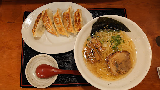 初訪問 黄金塩ラーメンと餃子頂きました スープは塩味丸くて食べやすかったです 麺は少し縮れた中太麺 炙りチャーシュー👌 太めのメンマは醤油ベースの味付けだったので口直しには良い組み合わせでした 餃子は焼面パリパリ😆餡はジューシーで美味しかったのですがニンニク強くて嗅覚と味覚が飛んじゃいます😑 個人的には単品OKですがラーメンと併せるにはニンニク強すぎかなぁ 塩ラーメンも今一つインパクト無く少し塩味強めでした(個人的な感想) 後味に残る塩辛さはなかったのでもう少し出汁にインパクトあったら塩ラーメンリピ有りです 評論家ではないので個人的な意見として悪しからず