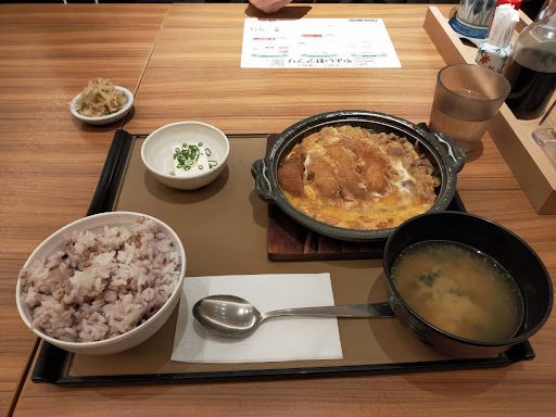 Read moreミックスとじ定食にもち麦ごはんに変更。 カツ+エビフライがあるのだが、カツばかり食べたような気がして、エビフライを食べた記憶がない。 一応エビのしっぽのカラが口の中に残っていて、初めてエビフライ食べてたんだと思ってしまうほど、カツとの区別がつかなかった。 肉とエビの差ぐらいは分かるはずだか、恥ずかしながら全く気がつかなかった。 一体なんだったんだろうと不思議な感じになった。 煮られて見た目そっくりだしなぁ。 それとドリンクを頼んだが、グラスがないとのことで、お冷用のコップでドリンクを提供された。 見た目あんまり美味しくなさそうで、量も同じなのかもわからない状況で出された。 週末の夜なので、ドリンクを注文する人が多くてグラスの在庫がないのか、洗う人がいないのかわからないが、勘弁してほしい。 そういえば、ここの店舗は配膳ロボがいなかった。 人だけいるのなら、さ...