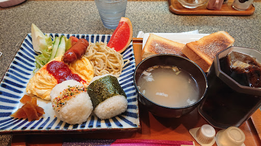 Read more昔ながらの喫茶店で朝食をいただく。 ワンプレートにおにぎりorパン+おかず+サラダ+デザートを盛り合わせた、なんとも豪華かつ家庭的なモーニングだった。味噌汁とドリンクも付いてくる。 たまには自分ではない誰かが作った朝ごはんが食べたくなるものだ。 おにぎりは塩むすびと梅干入りむすび。おかずのあんかけ卵焼きが、なんとも美味しくごはんが進んだ。 食後のコーヒーも美味しくほっと出来る時間だった。 これだけのボリュームがありながら...