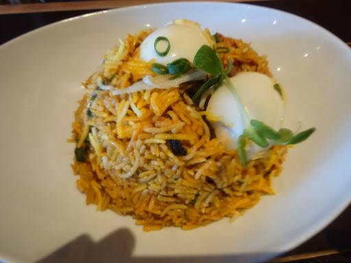愛媛県新居浜市で本格インドカレーを味わうことができるお店です。 週末のランチで訪問しました。 11時の開店と同時に入店したのですがすでに二組お客さんがいます。 タンドリーセットと、チキンビリヤニを注文しました。 タンドリーセットは、タンドリーチキンと、手羽先の2つのチキン、選べるカレーと、おかわり自由のナン、パパドゥでしょうか揚げた何かと、あと、サモサの中身が入ってないようなものに、サラダ、飲み物が付いてきます。 ビリヤニは、単品かと思いきや、同じくサラダとドリンクが付いてきます。 カレーは、これぞインド、ネパールのカレーですね!お肉たっぷり、クリーミー、辛さも5段階で選べます。ナンにとても合います。おいしいです。 タンドリーチキンは、しっかり漬け込まれた後に焼き上げられたジューシーなもも肉でおいしいです。なぜかこれに手羽先も付いてきました。こちらの味は微妙にタンドリーチキンと違います。メニューには手羽先と記載があります。謎メニューですね。 ドリンクは、チャイや、ラッシーも選ぶことができましたのでラッシーにしました。飲みやすくてスパイシーなカレーによく合いますよね! もう一つ気になっていたビリヤニも到着しました。 ビリヤニも本格的な味というか作り方をされていて、インドのスパイス、クミンや、カルダモン、それ以外にも色々入っていそうなのですが何かは分からず、とにかく独特の風味がたまらなく食欲をそそります。一口食べるとたまらなくおいしいです!漬け込んだチキンと、ゆで卵がたっぷり入ってボリュームもあります。チャトニーと呼ばれるミントとにんにくを混ぜたと思われる緑色の自家製ソースで味変するとまたこれもおいしいです。 店内はわりときれいに掃除されています。4人掛けのテーブルが6つと、2人掛けテーブルが3、4つあります。 サラダは写真を見ていただくとわかると思いますが、典型的なインドのサラダです。生の大根が2切れ、適当に切って、見た目が微妙なキャベツと、豆腐にサウザンアイランドドレッシングがかかっていますので、受け付けない方もいらっしゃるかもしれません、注意してくださいね! 後、お店の前の看板に書いてあるメニューには置いていないものもあるので(この辺の適当さもインドっぽいですよね。)注意してください。 私の場合はグリルセットと言うものがお得に思えたので注文しようとしたらそんなメニューは無いと言われてしまいました。 とにもかくに...