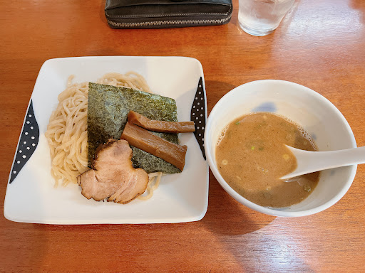 Read more豚骨魚介つけ麺 純のつけ麺は人生で初めて食べたつけ麺であり、僕をしばらく「ラーメン屋でつけ麺しか注文出来ない男」にした非常に印象深い一杯です。 最近は夜限定メニューである「海老油そば」に浮気をすることもありますが、私の好きな食べ物ランキングダントツ一位なのは今も変わっていません。 なお、大盛りより小さいサイズは四角い平皿で出てきます。学生時代は並盛を頼んでいましたが、知らず知らずのうちに特盛りまでグレードアップしていました。 麺は提供直前にしっかり水で締めてあるので冷たく、つけ汁もサラサラでそこまで熱くないので、最初から最後までベストな状態でつけ麺を楽しみたい場合は並盛りを注文することをオススメします。 麺を食べ終わった後はつけ汁をスープで割ってくれます。ネギを入れるか入れないか聞かれるのでお好みで! 投入されるスープは、つけ汁を旨味のラッシュに襲われた舌を癒す優しい味に早変わりさせます。「和」の部分が引き立つ感じです。