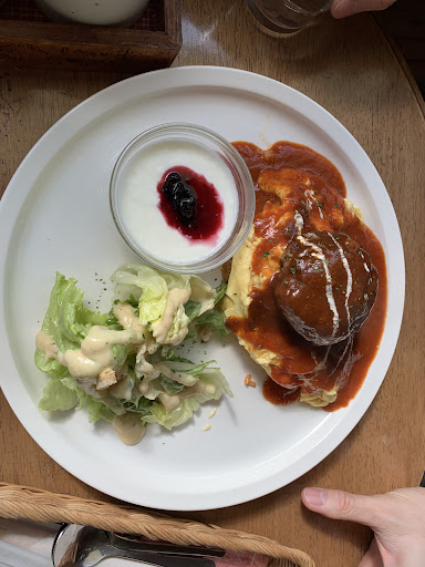 Read moregoogleマップで評価が良かったので、伺わせて頂きました。内装はハンドメイド的なあたたかみのある可愛らしさ満点です。トイレの内装まで可愛いです。店員さんも愛想が良くお綺麗です✨メニューも豊富で、洋食メインです。ハンバーグ➕オムライスと、オムライスを頂きました。ソースはトマトベースで懐かしさを感じる、ホッとするお味です。ヨーグルトは自家製で、ジャムはブルーベリーかな?程よい甘さで爽やかなお味です。サラダのドレッシングは、マヨネーズ➕醤油ベースで、全体的に美味しかったです✨他にも、海鮮ピラフやら、ドリアやら、美味しそうなメニューばかりです。こちらのお店は、ベンチタイムという名の通り、パンをメインにされているため、今度はパンやピザを頂きたいなぁって思っています。人気のあるミルクパンは、開店してから作られているようなので、時間を置いてからいった方が良いのかな? ちなみに、国産の黒ニンニクが破格で売っていますので、...