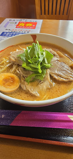 Read more国道180号線沿いにあるラーメン屋さん。ほっかほっか亭等の他の店舗との共用駐車場。お店は昼の時間帯のみの営業で券売機で食券を購入するスタイル。ハーフセルフ方式で持ってきてくれるけど、お水と返却はセルフ式。ラーメンは地元の千屋牛を使った牛骨ラーメンと醤油・味噌のラーメンが有る。並・大等で値段が変わる。店内は4人掛けのテーブルが7席程と座敷に4人掛け2席とカウンターに数人の収容数。ご夫婦で経営されているらしく2人で切り盛りされていた。訪問した日は味噌ラーメン¥650と餃子+ご飯セット¥350合計¥1000を注文。昼過ぎだったのでテーブルの8割程は埋まっていた。5分程で着ラー。味噌は濃い目の甘味のあるスープに中細麺で美味しい。チャーシューも味が良くしみ込んだチャーシューで旨い。餃子は一口サイズより少し大きいくらいで、これも旨い。特にお米も旨かった。全体的にまとまりのある角の無い味付けで、万人受けす...