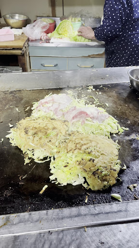 Read more木曜日の14時ころに入店し、そば無し豚玉を食べました。牛玉、エビ玉等はありません。玉の大きさは大中小選べ、ソバ有無も選べます。店内の広さは8畳ほど、小さいテーブル3卓の小さいお店で、超元気なおばちゃまが一人で切り盛りしています。平日の昼前は会社等の事前注文分の準備とその配達があって忙しいはずだと、店をよく知る知人から聞いていたので、昼過ぎに行って正解でした。 いわゆる広島焼に属するソバ有りお好み焼き屋さんです。私はソバの入っていない関西風が好きなのであえてソバ無しを注文しましたが、関西風お好み焼きではありません。関西風は粉とキャベツが半々混じった生地ですが、こちらのソバ無しは広島風お好み焼きからソバを無くし、気持ち汁粉をつなぎとして足したほとんどキャベツ生地でした。そして豚肉の量が多い!オタフクではない濃い目のソースがよく合いとても美味しかった!粉ほとんど無しでしたが、キャベツと肉が多いので満腹になりました。これで550円...