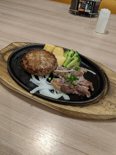 料理出てくるまで20分待ち、まだバーベキューでやった方が早いんじゃね?と言うレベル。 そして激熱ステーキはほぼ生で出てくる、熱した鉄板でこちらサイドで焼くのだろうがあそこまで生で出てくるのに持ってくるの遅いわ熱した鉄板は冷めるは最悪。 あらびきハンバーグは肉固すぎで下味も感じられず。要は牛肉の塊かじってると言うイメージ。(ちなみにあらびきハンバーグには油はね防止は無し、タレ入れたら実際飛んできた。食べる方は気をつけて) 子供用プレートは写真と質と量が詐欺レベルに全然違います。ある意味大笑い出来たので良かったですが小学校三年生ではまず少なすぎる、と言うかキッズレベルですね。これもガストの子供用プレートと比較すると量と質ともに下です。(米はゆで卵2個分ぐらい?) 店員の態度も当たり前のように、遅れたのに謝罪も無く、スープの件も焦りなし、箸くれと言ったら自分で探せと言われるし、踏んだり蹴ったり。 そもそも肉もあんなに低品質だと思わなかった。トータル4000円だったがほっともっとで焼き肉弁当食べてミニストップでソフトクリー...