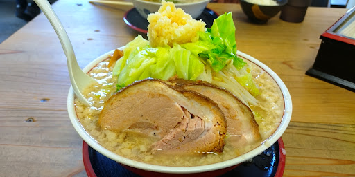 とある昼下りボォ〜っとしてたら今回の東北ツアーに同行してくれてる相方からメールが入る 「ラーメン行きませんか?」 なかなかイイ男じゃ! 即答で 「カモ〜ん!」 マイカーが迎えに来たと同時に飛び乗りGoogleで検索してた(じげん)へレッツゴー! この店は醤油系ラーメン店みたいでメニューの中に、いわゆる二郎系が存在する ニンニクが自分に求愛してきたので迷わず二郎系の(じげ郎麺\850)をチョイス 席に座りセルフの水をごクリ この季節やっぱ冷えた水が1番ウマい 待つこと3分 着丼! ナイスなフォルムだッ! 白い背脂が輝いている ニンニクは多めコールしただけあって存在感たっぷり チームを率いる4番バッターだッ! スープは数ある二郎系でも薄口タイプ 麺は細or太麺から選べ太麺の硬めにした ワシャワシャの麺が背脂に絡みつく まるで肉弾戦のように身体中に汗が流れる