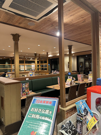 Lots of options for food here. They have a parking lot out front for those who drive, and offer a menu in English and Chinese. The food is pretty good, and you really can't beat the price. To request service press the button on the table, or you'll sit and wait like we did. I only gave four stars because the salad looks like it was past its prime, and the drink bar with so much hype is really unremarkable. The drinks taste watered down to me. Overall I would recommend a visit, you can beat the amount you get for the cost, and like most other places in Japan, the service is good, even if you don't share a...