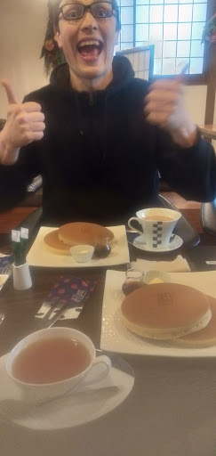 We were warmly met by a very friendly and helpful lady that showed us where to park. The Cafe has a couple parking spots but the train station is with walking distance with plenty of parking. I had an iced Coffee with the breakfast special of fresh toast, scrambled egg, and bacon. I also added sausage and the pancakes. The pancakes are amazing, cooked perfectly and not too sweet or bland. We will be going back to this location when we visit Nikko again.