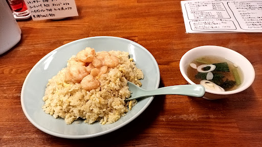 どちらも、大盛りで注文しました(^_^)/ オーナーが ワンオペでこなしており、 先にエビチャーハンが着丼。