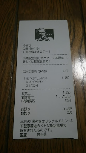 Read more6ピースバリューパック1,750円をお持ち帰りで頂きました。バリューパックのセット内容はチキン6ピースの他にビスケット、ナゲット、コールスローから選べますので私はビスケットをチョイスしました。チキンの香ばしい衣とジューシーなお肉で旨い!ビスケットはメープルシロップと相性が抜群です。チキンはビールと共に頂きましたが旨いですね!ビールに合う合うケンタッキー🎵たまに食べた...