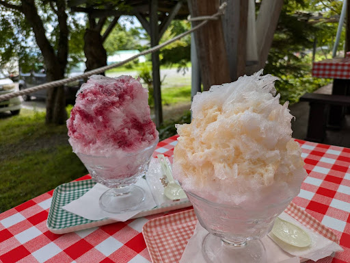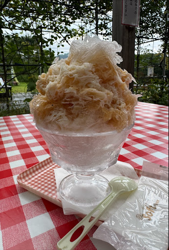 Read more日光天然氷の蔵元「四代目徳次郎」さんのかき氷が食べられるチロリン村さんへ。霧降の滝をもう少し登ったところにあります。日曜日の10時半頃到着しました。到着少し前から生憎の雨で少し暑さは和らぎましたが、ムシムシしています。お店の前が駐車場で、沢山の車が停められそうです。駐車場の左側から入るよう指示があり、ぐるっと回るとお店の注文受付に辿り着きます。こちらで注文してお会計を済ませ、空いているお席で出来上がりを待ちます。ちょっと区切られた隣はわんちゃん優先席とあり、ペットを連れて利用する事もできるよう。少し待つと渡された呼び出しベルが鳴り、取りに行きます。私は「ロイヤルミルクティー」を。楓の樹液で淹れたアールグレイを使用しているそうです。やわらかな甘さのアールグレイと練乳が相まって、フワフワの氷と共に口の中に広がります。幸せ〜😋いちご好きな連れは「プレミアムイチゴミルク」を。今が旬の「なつおとめ」を使い練乳と合わせたもの。どちらも美味しくいただきました。帰りも出口が決まっていて、そちらへ進むと「四代目徳次郎」さんの氷作りに関する展示物が飾られていました。7.8月以外は土日のみの営業に戻るようですのでHPを確認して訪問さ...