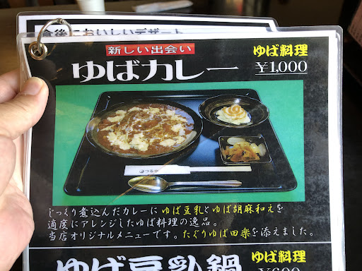 そんな中から選んだのはコレ♪ 《ゆばカレー》1,000円 メニューの記述によると・・・ 「じっくり煮込んだカレーに”ゆば豆乳”と”ゆば胡麻和え”を適度にアレンジしたゆば料理の逸品」だとか