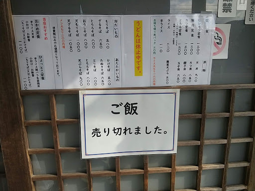 着いたら2組待っていました! 扉に「ご飯売り切れました」と。
