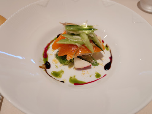 隠れ家的なフレンチレストラン。下今市駅のSL展示館側程近い場所にレストランはあります。ですが改札口は反対側1箇所にしかないために徒歩で行くには回り道をするしかありません。改札を抜けて右へ行き突き当たったら右へ行き日光線をくぐり突き当たったらまた右へ。今度は鬼怒川線をくぐってしばらく行くと看板があるのでそれに従い右へ曲がるとようやく右20mの看板が見えてきます。駅から右へ曲がるを繰り返し所要時間10分弱で到着です。 ランチでフルコース5,500円をいただきます。アミューズは食感が面白い一品。とてもなめらかな菊芋にコンソメジュレとたことトビコ。サーモンとホタテと海老のサラダが目にも鮮やか。自家製の全粒粉とごまのプチパン。濃厚でクリーミーなゴボウスープ。 ポワレは絶妙な火の入り方で皮もパリパリ。牛ほほ肉赤ワイン煮込みはトロトロで甘めのソースと絡み合って美味しいです。ブラックチェリータルトに酸味のあるソルベが全体を引き締めます。焼き菓子付きの紅茶でコースは終了。お料理はとても丁寧に仕上げられています。素材を活かす味付けでフレンチを食べ慣れていない方でも抵抗なく受け入れられるお味です。ワインなしでいただけるくらい。 ハウスワインはグラス白(シャルドネ)990円赤(メルロ主体)1045円とコース価格に対しちょっとお高めです。ペアリングは最高なので良いのですが。少なめのポーションなのでそもそもコースがお安いのかもしれません。飲めない方には大変お得でしょう。 また季節が変わったら...